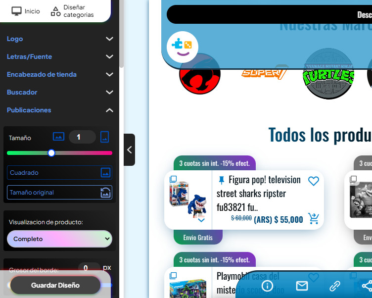 Configura como seran los pedidos, pone precios fijos, envio sin cargo, retiro en tienda, etc.